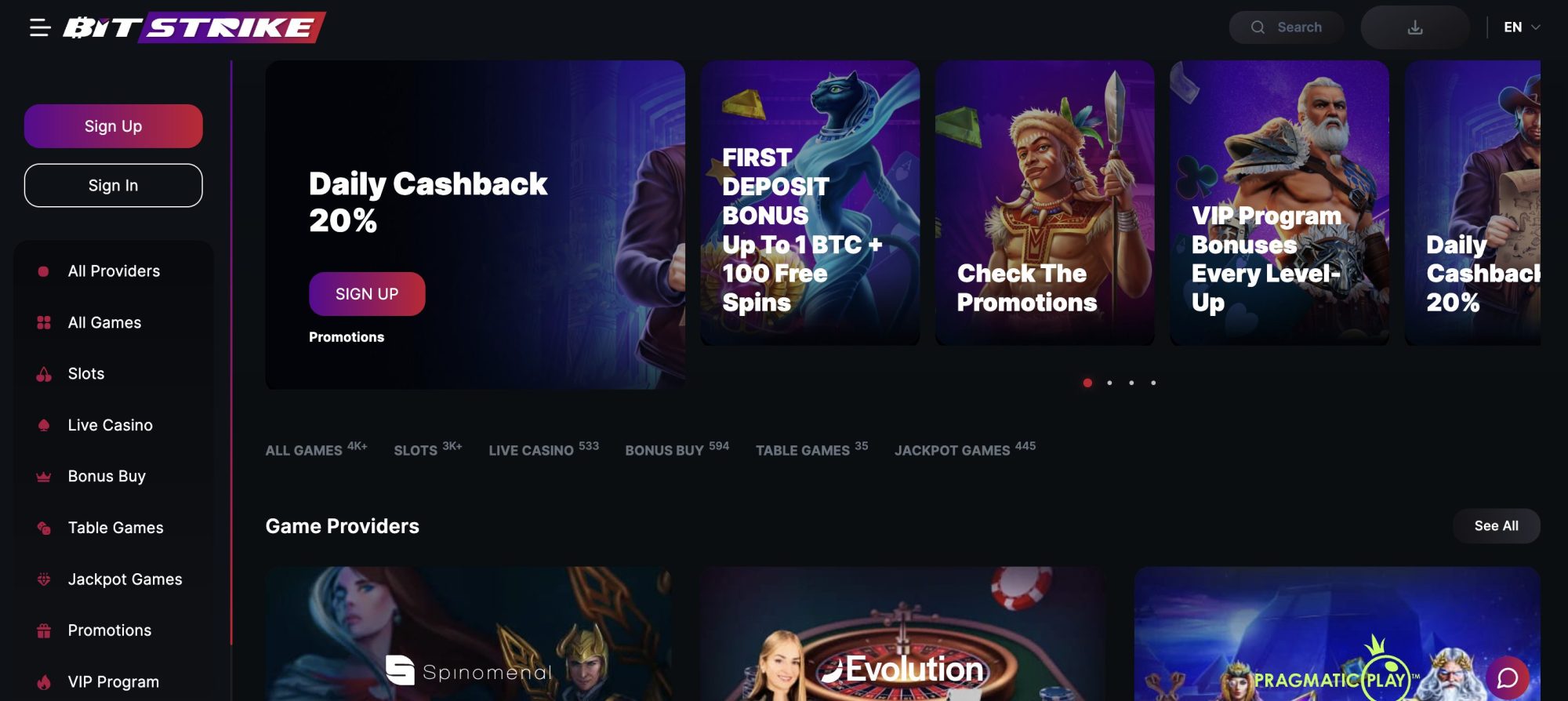 - Bitstrike: With over 3,000 titles, Bitstrike (formally Bitslot) is a great option for playing crypto slots. Backed by licensed developers like Pragmatic Play and Betsoft, slot games cover Megaways, bonus buys, and jackpots.